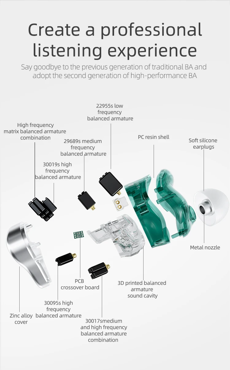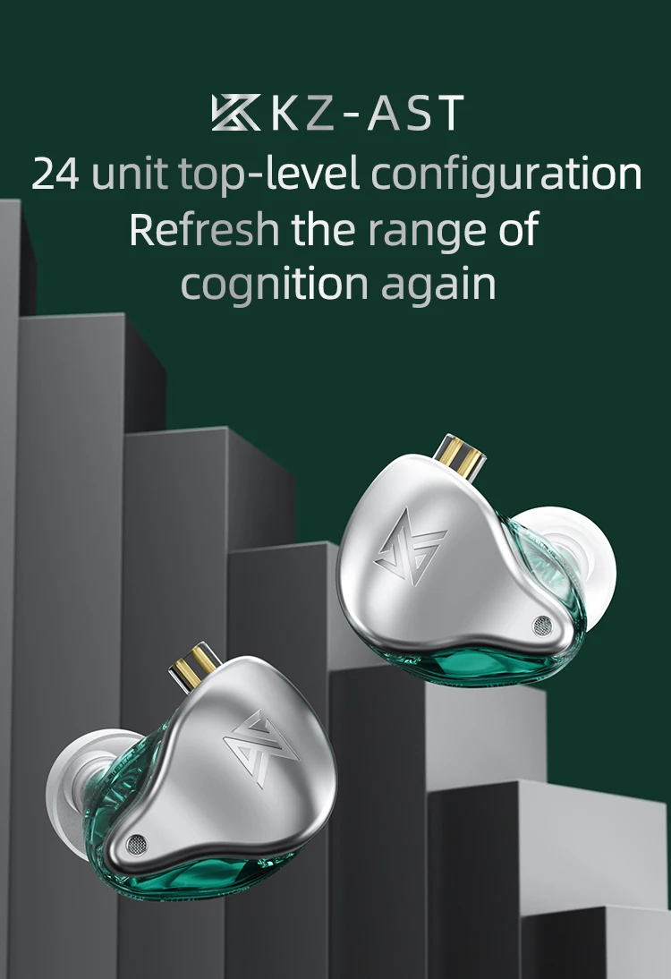 KZ AST 24 BA Balanced Armature Units HIFI Earphones Monitor DJ Headsets Auriculares com cancelamento de ruído Cabo 2PIN KZ ASX AS16 ZAX ZSX